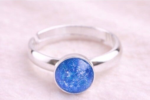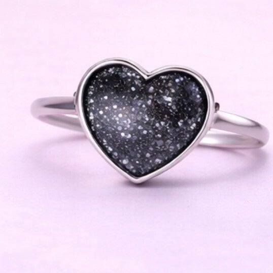 Adjustable 925 silver ring. Send me a message with a colour and finish you would like and I will do my best match it. I can add sparkles and your ashes can be hidden or visible.